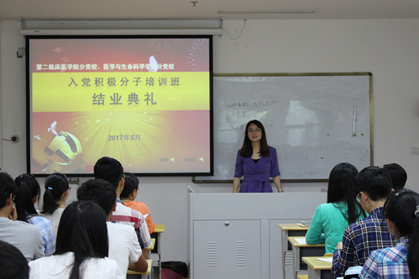 5月18日中午,医学与生命科学公司分党校与第二临床伟德betvlctor体育官网分党校合作开展的入党积极分子培训班结业典礼在丰盛楼216教室举行。医学与生命科学公司党委杨羽书记、第二临床公司党委倪光夏书记及部分指导老师出席了结业典礼。