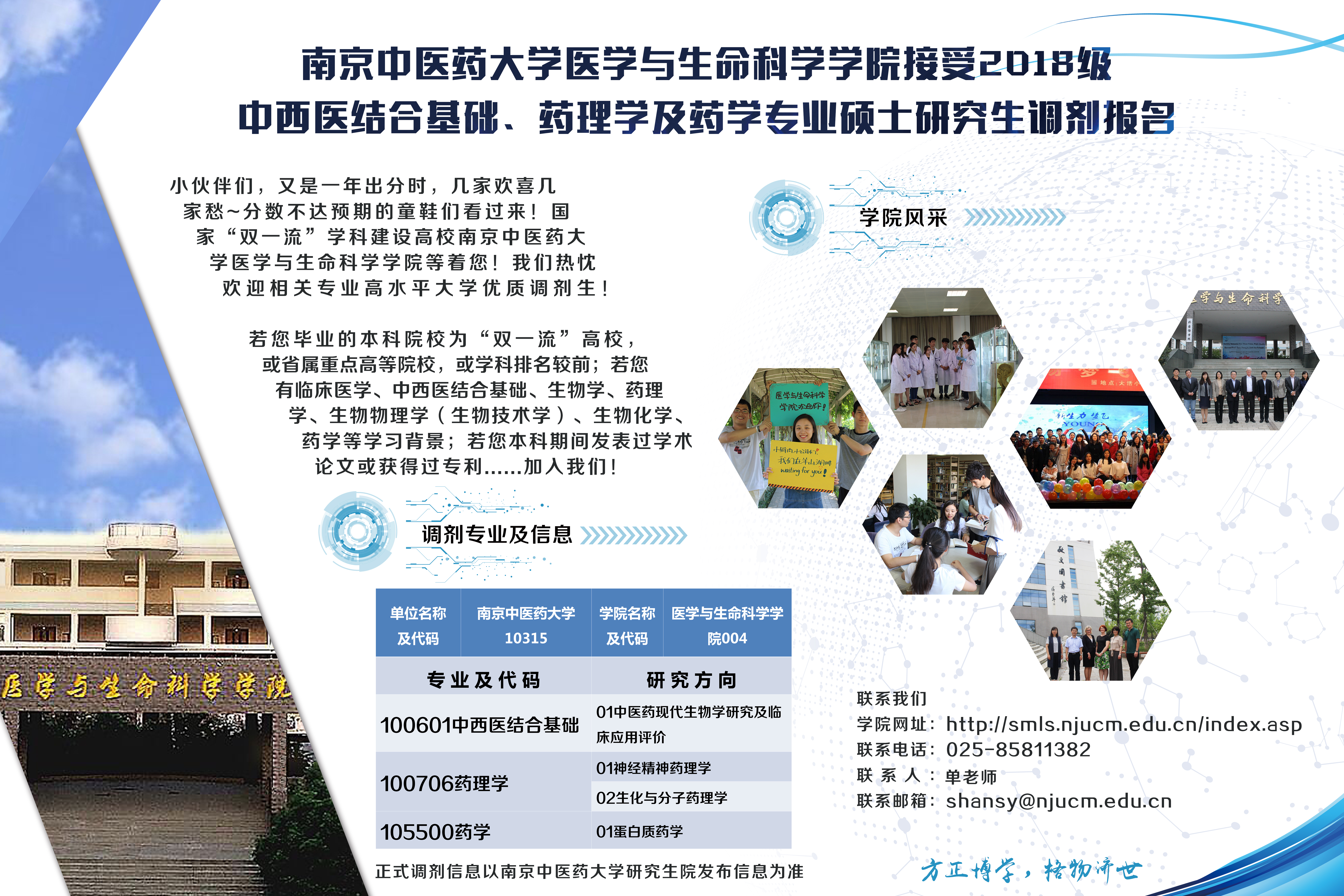 伟德betvlctor体育官网医学与生命科学公司接受2018级中西医结合基础、药理学及药学专业硕士研究生调剂报名