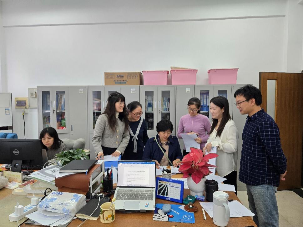 两位教授深入公司各教研室,从教学核心环节展开全方位“精准查体”。仔细审阅和核查各课程试卷命题的科学性、评分标准的严谨性及归档的规范性,为试卷结构优化提出具体建议;聚焦教学大纲、教学设计、集体备课记录等关键教学材料,逐一指出需完善的细节要点。指导过程中,两位教授围绕认证核心指标与老师们深度交流,不仅让老师们明确了认证材料梳理的规范要点,还针对质量提升给出了可落地的解决方案。